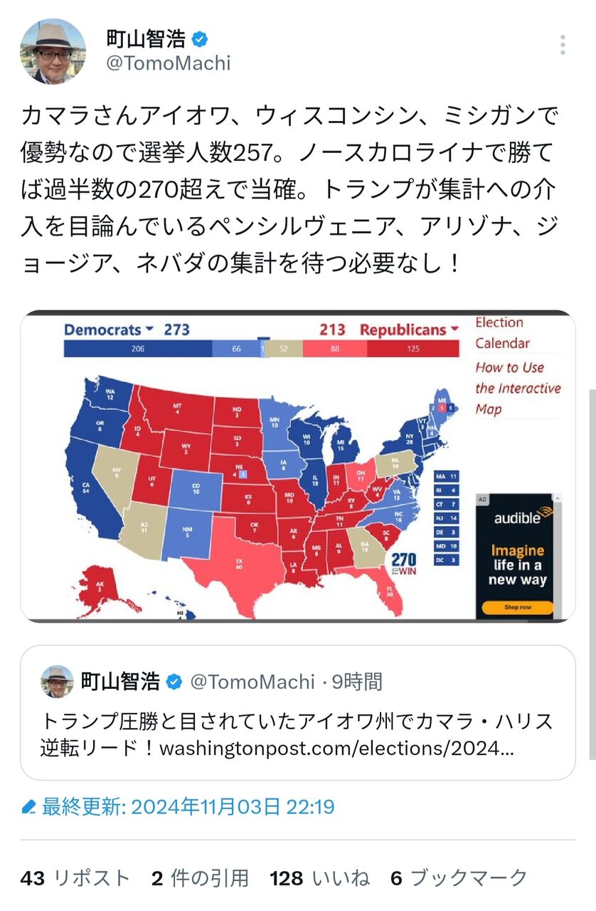 【米大統領選】最終盤で「アイオワの衝撃」 世論調査でハリス氏優勢