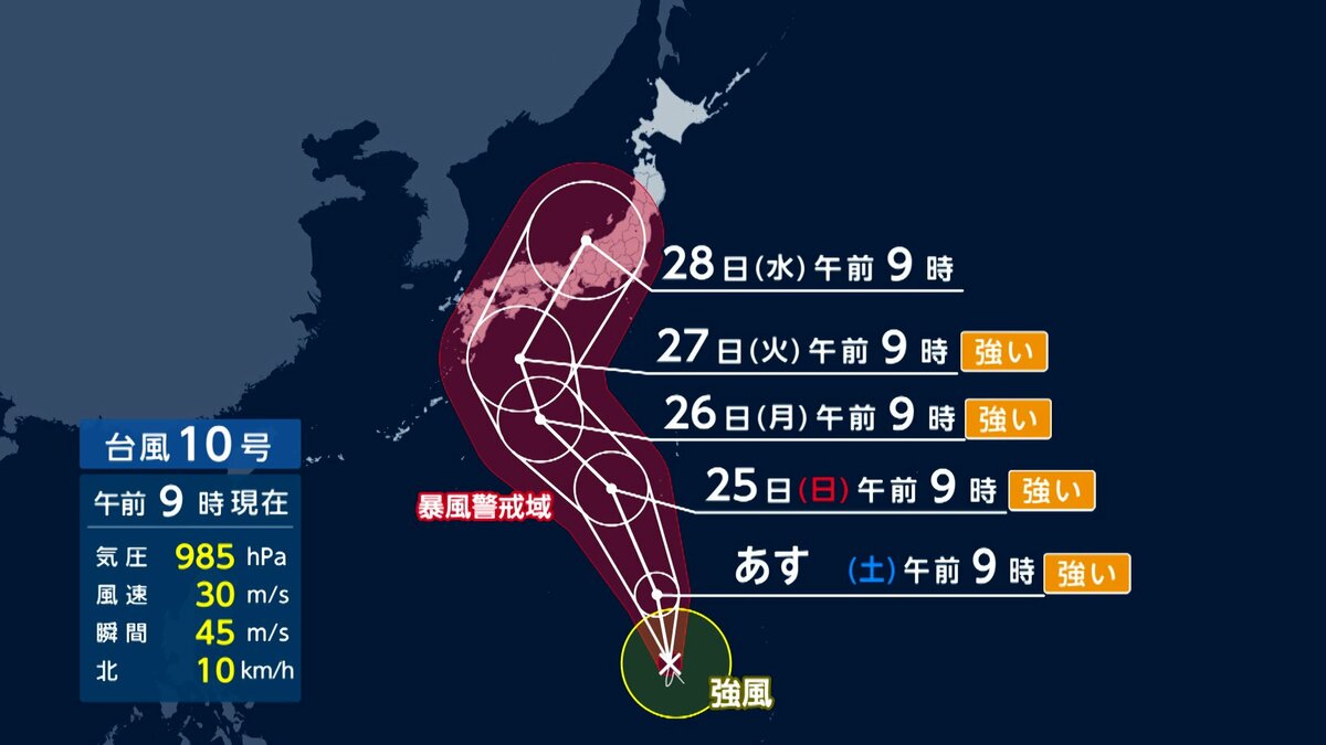 台風10号、日本の南を北上中!発達に注意が必要