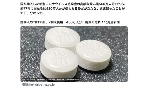 【国購入のコロナ薬】7割未使用 430万人分、廃棄の恐れ