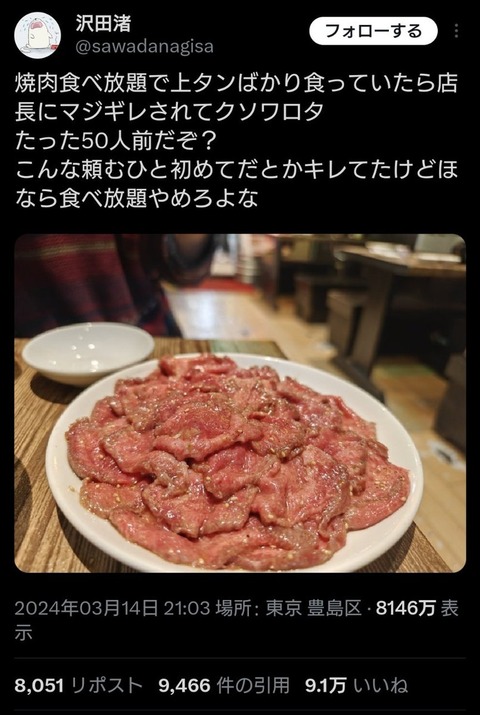 【食べ放題】「上タン50人前」注文して激怒されたのは嘘だった