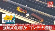 首都高湾岸線で大型トレーラーが強風にあおられ横転事故