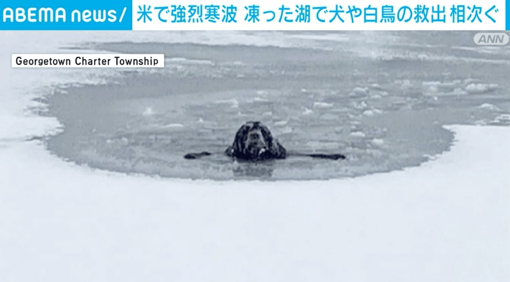 米中西部大寒波で湖が凍り、イヌやハクチョウの救出活動が続く!