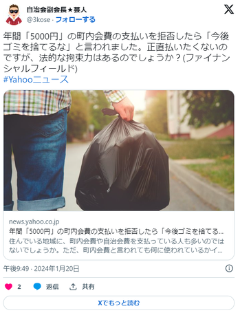 「町内会費を支払わなければゴミ捨ての使用は違法なのか」- 法的な観点から見た拒否に対する論点と解釈