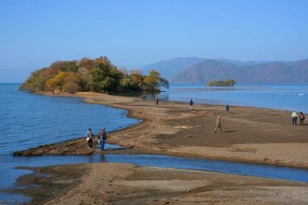 「幻の道」が出現!琵琶湖水位低下で小島が陸続きに
