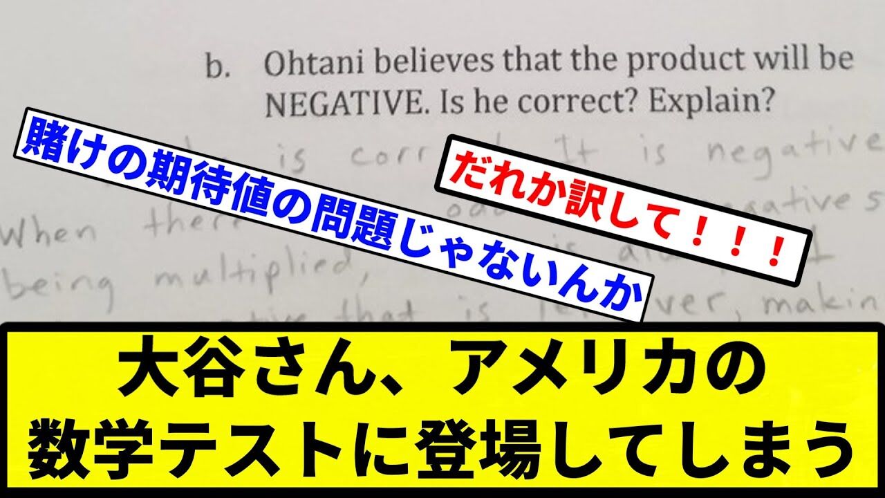 【仰天】大谷さん、アメリカの数学テストに登場してしまうww