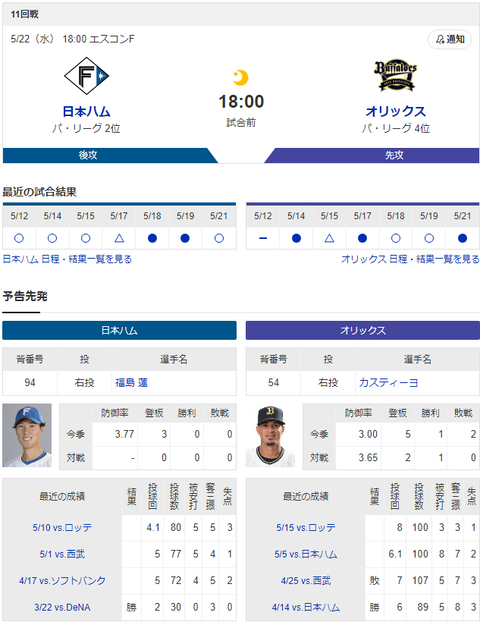 【オリ実況】日ハム 対 オリックス(エスコン)[5/23]18:00~