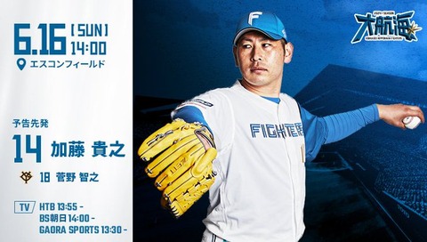 加藤貴之 6月16日の巨人戦 予告先発! 14:00~