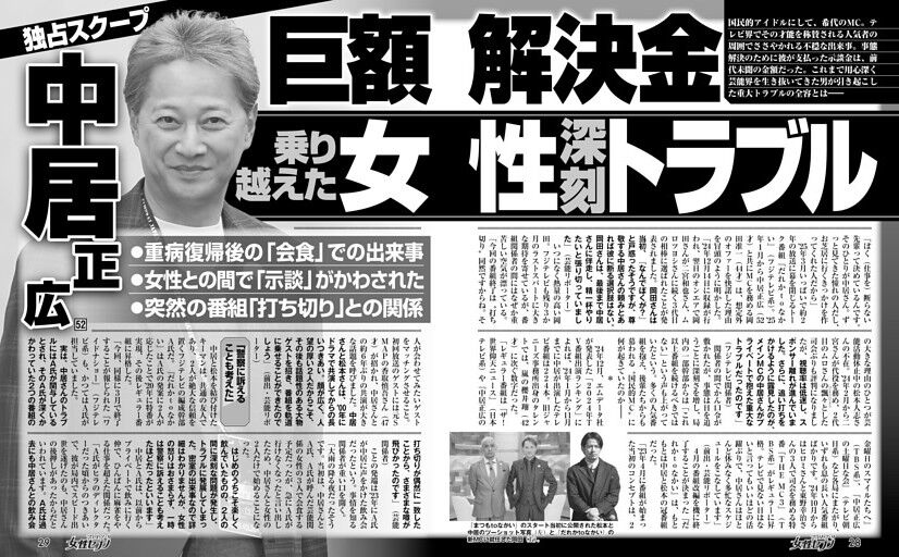 【女性トラブル】フジテレビ “女性献上”飲み会の利害構造とは? 女子アナ好きで有名だった中居正広!
