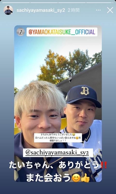 オリ山岡「さちさん、日ハムだったら来年もいっぱい会えますね」 ハム山﨑「また会おう」