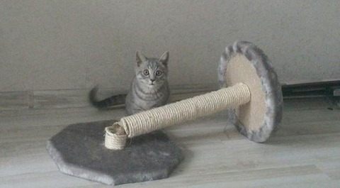 うちの猫、激しく爪とぎする子じゃないんだけど私が仕事から帰ってきた時だけバッツンバッツンやる。【再】