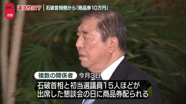 メディアが石破下ろし・・・朝日新聞「自民の初当選衆院議員が石破茂首相側から商品券10万円相当受け取り。複数証言」