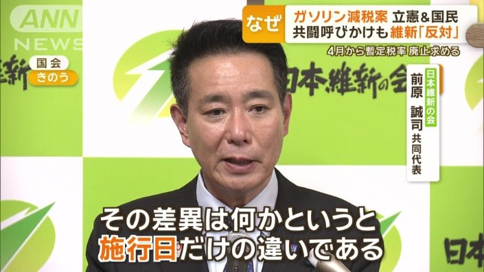 【維新は国民の敵】立憲&国民提出のガソリン暫定税率廃止法案に維新反対