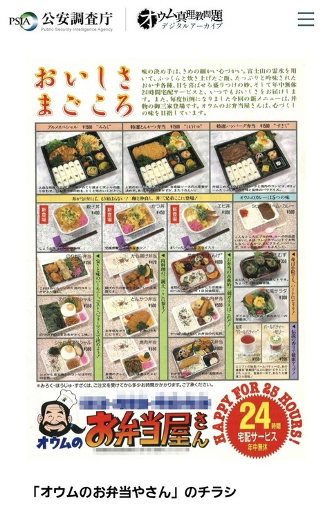 公安調査庁、オウムのお弁当屋さんのチラシを高画質公開
