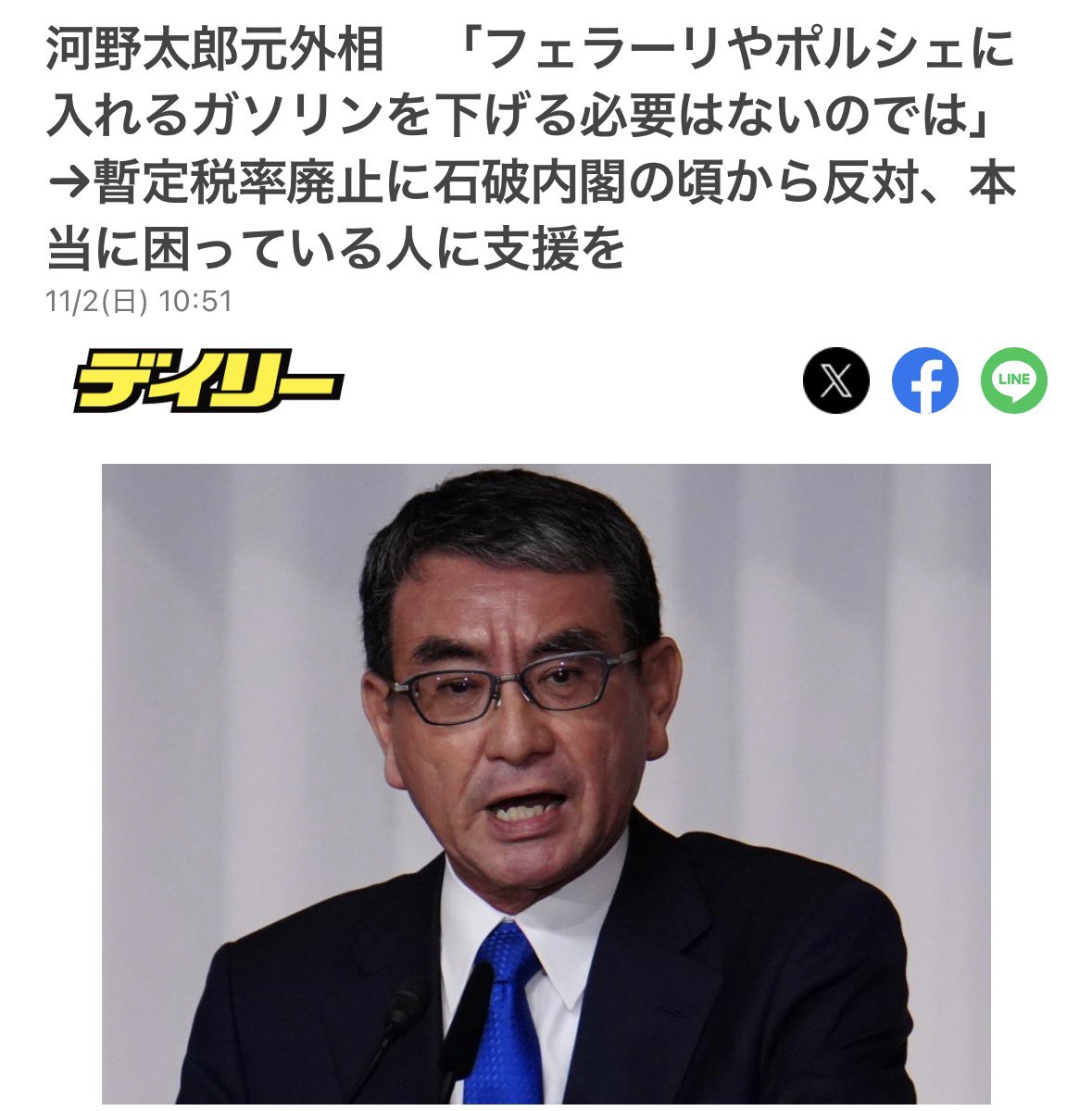 【河野太郎元外相】「フェラーリやポルシェに入れるガソリンを下げる必要ないのでは」暫定税率廃止反対