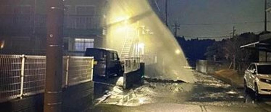 千葉で道路陥没、水道管が破損か「噴き出た水がアパート飛び越えた」大網白里の住宅街