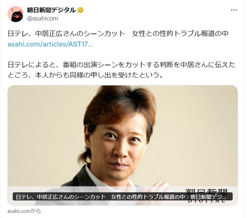 中居正広、ついに番組も中止・出演シーンカットに… 一般紙でも報じられ始める