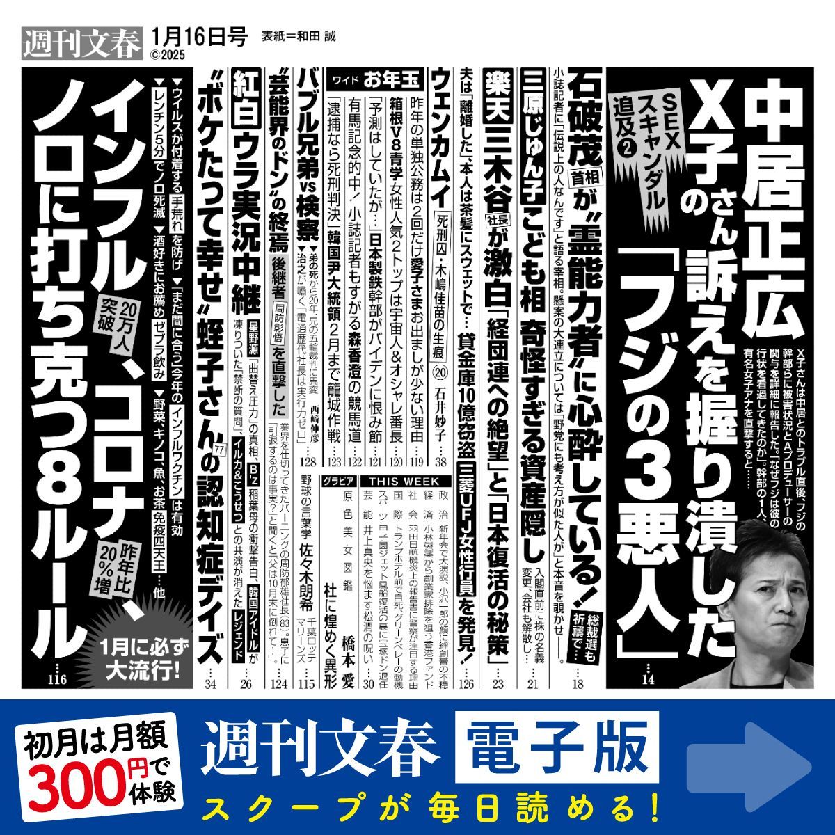 【文春】中居正広「9000万円女性トラブル」X子さんの訴えを握り潰した「フジテレビ幹部」