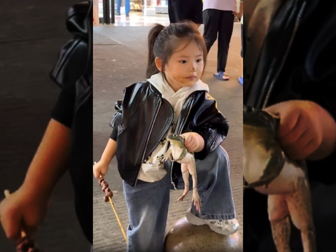 【動画】中国の幼女、ワイルドでかっこいい!”カエル置けよwww”