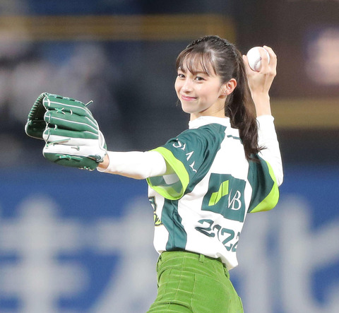【2022/10/23 YS-B】中条あやみ、日本シリーズ第2戦の始球式に登板し笑顔を見せる!