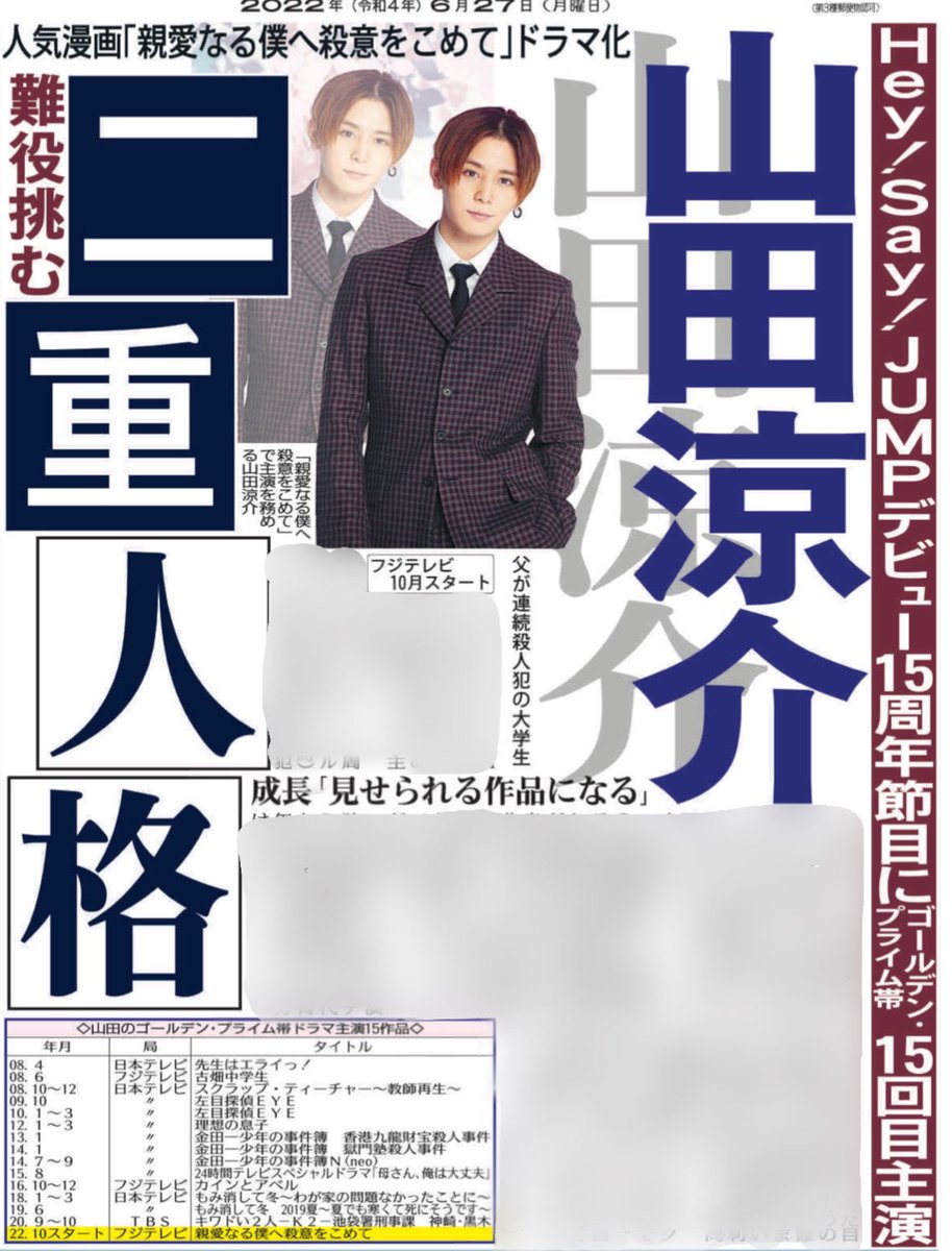『親愛なる僕へ殺意をこめて』山田涼介主演で10月ドラマ化!wwwww