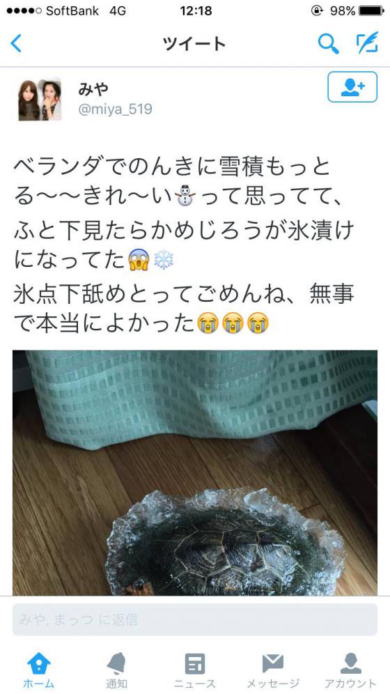 【悲報】亀さん、この寒さでカッチカチに凍ってしまう