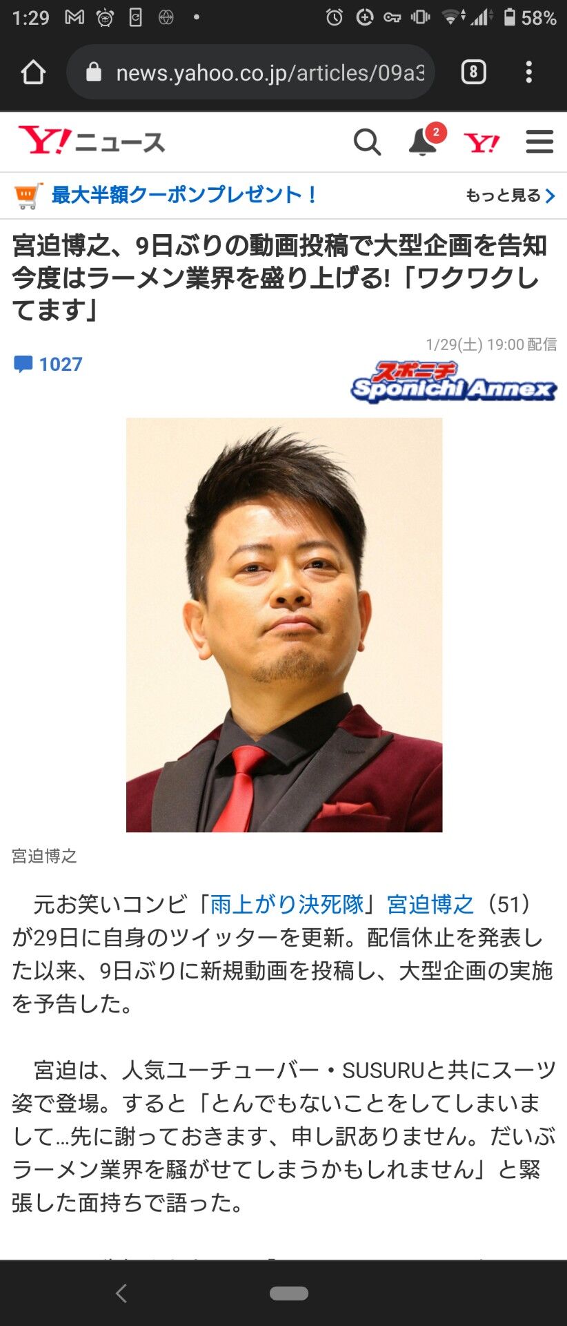 【猪突猛進】宮迫博之さん、今度はラーメン業界に殴り込みwwwwwwwwwwwwww