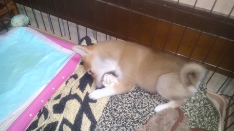 3ヶ月のメス、サークルで室内飼いです サークルから出すと早速噛み噛みしてきます というか常に何かを噛んでいないと気がすまないようで 2ヶ月で来た時からそうでした。【再】