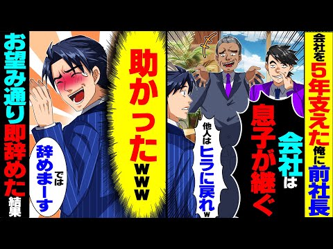 【驚愕】新社長として会社を5年支えた俺に前社長親子「つなぎ社長は用済み!他人はヒラに戻れ」→お望み通り速攻で辞めた結果