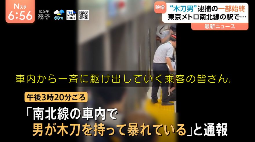 【動画】東京メトロ南北線の車内で奇声を上げながら木刀を振り回す男が出現して車内がパニックになるも駅員に確保される…