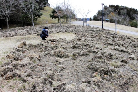 【画像有】公園の芝生が穴だらけにされる事案が発生