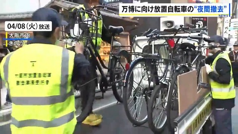 【大阪市】放置自転車の「夜間撤去」を開始 万博閉幕まで毎晩実施