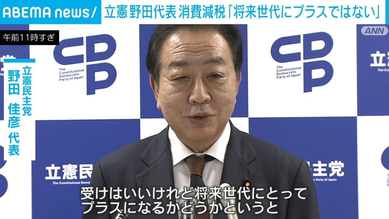 消費減税は本当に必要か?立憲・野田代表の見解