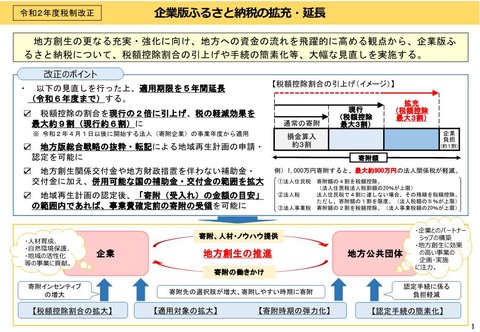 【企業版】ふるさと納税延長へ 地方創生後押し、透明性確保も