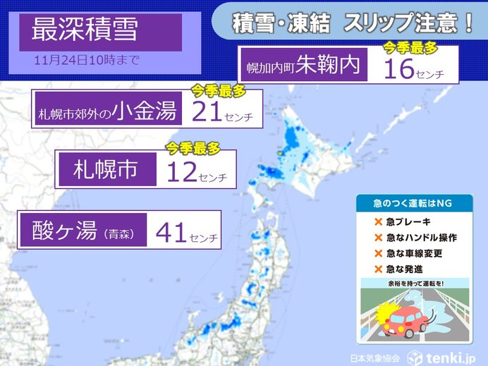 【積雪】札幌市南区で積雪21センチ!お父さんは除雪で汗 大喜びの女の子は”初めての雪遊び” 路面はべちゃべちゃ→凍結の見通し
