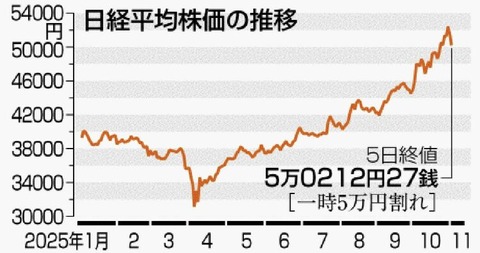 【日経平均】終値 1163円高5万1028円 4営業日ぶり5万円台