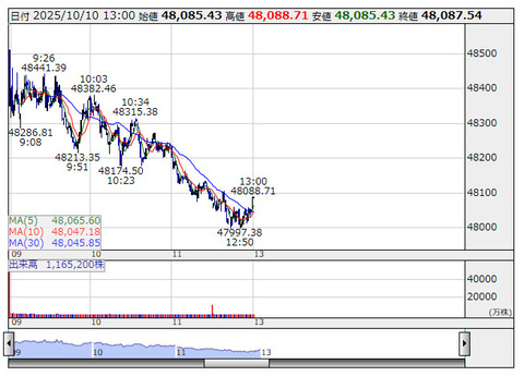 【日経平均】終値 491円安4万8088円 2日ぶりに下落