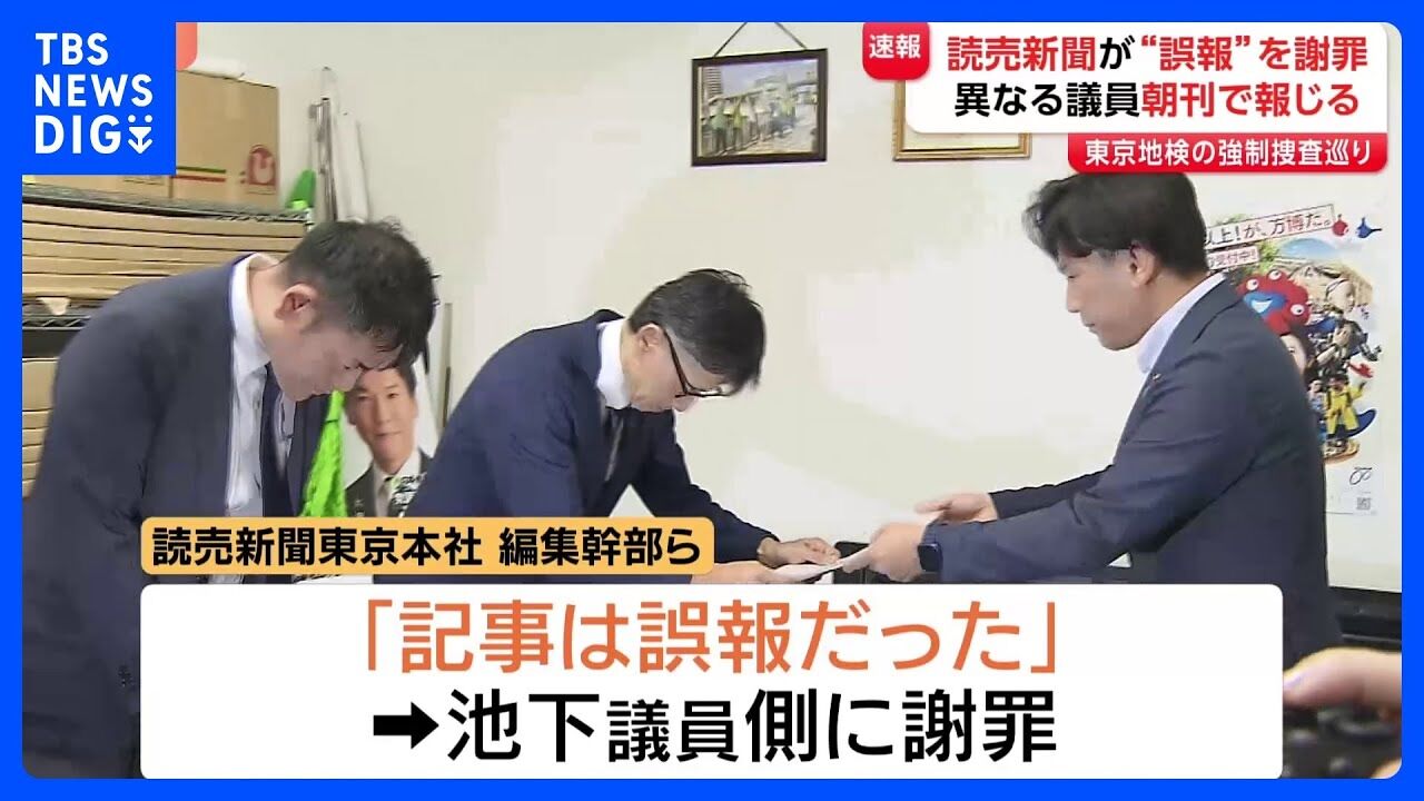 【速報】読売新聞が「誤報」を謝罪…27日朝刊1面で“維新衆院議員の公設秘書を東京地検特捜部が捜査”と報じるも…