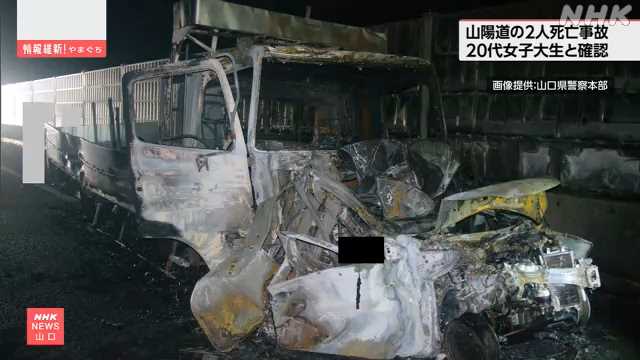 【山口】死亡したのは福岡県の女子大学生2人・・・山陽道4台絡む事故 トラック衝突で潰れた軽乗用車内で焼死