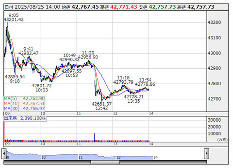 【日経平均】終値 174円高4万2807円 2営業日連続で値上り