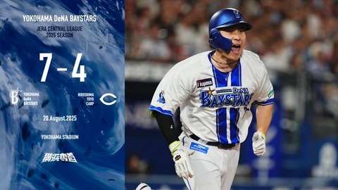 DeNA 7-4 広島、佐野恵太が1塁駆け抜け競り勝ち!東5回3失点で12勝目!入江19S