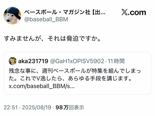 阪神ファン、ベースボールマガジンを脅迫した結果www