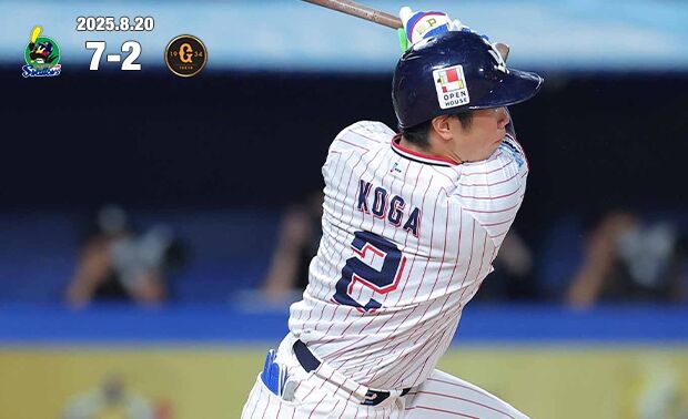 セ・リーグ ヤクルト 7-2 巨人 [8/20] ヤクルト村上8号先制HR、山田8号2ラン、古賀走者一掃2塁打 巨人・森田6失点