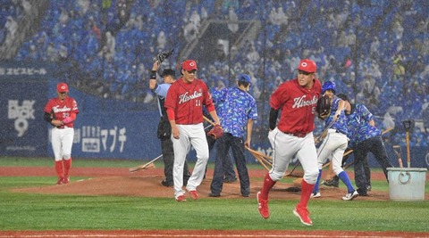 【雨の中でもLet’sブルブル!!】DeNA - 広島、4回途中降雨ノーゲーム