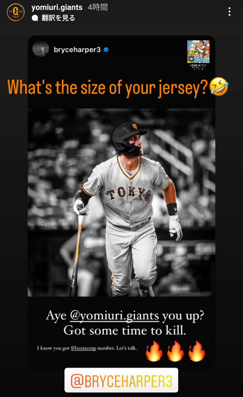 【巨人】「ジャージのサイズは?」昨季メジャーMVPハーパーの問いかけに反応