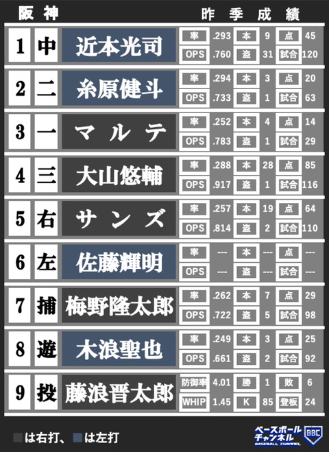 【朗報】阪神タイガースの開幕スタメン、エグい