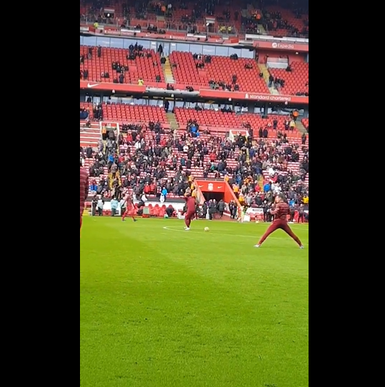 【悲報】リバプール南野タキ…同僚のファンダイクにボールをぶつけられてしまう…