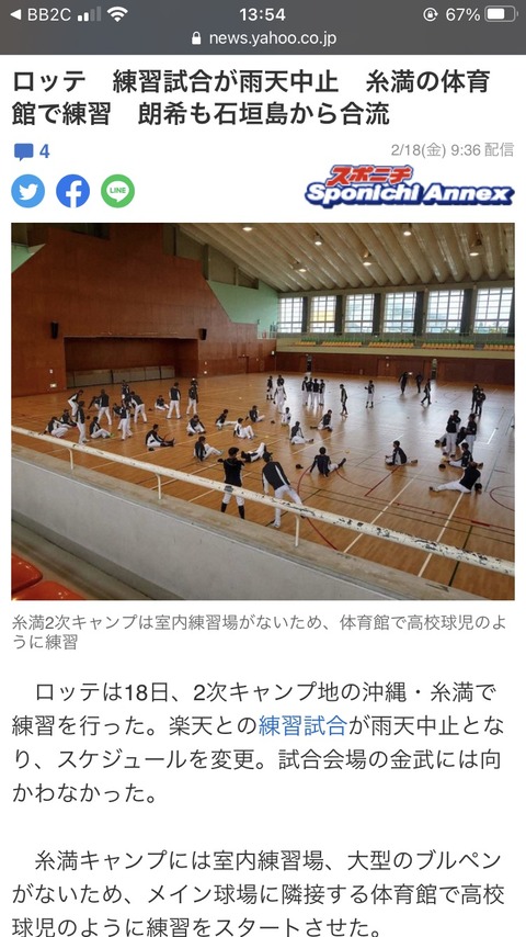 【プロ野球】(2/20) 練習試合順位表!!!!!!!!!!!!!!!!!!!!
