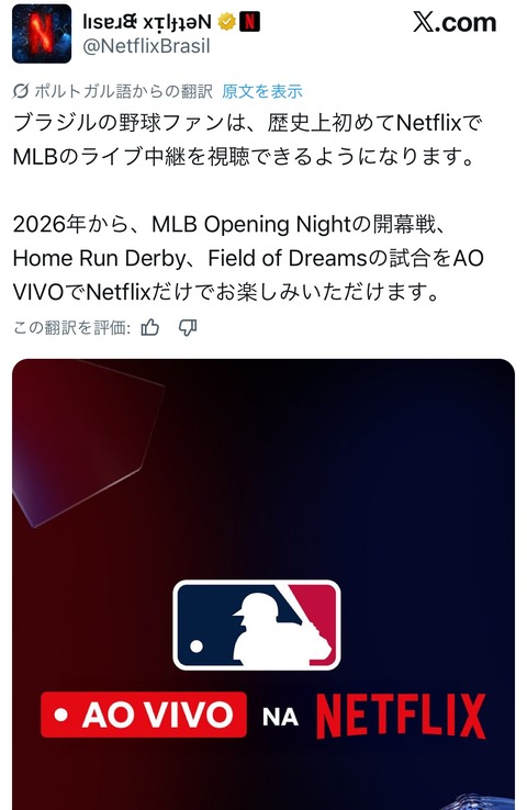 ネトフリとMLBがかなり親密になったら再び野球ブーム来そうだよな