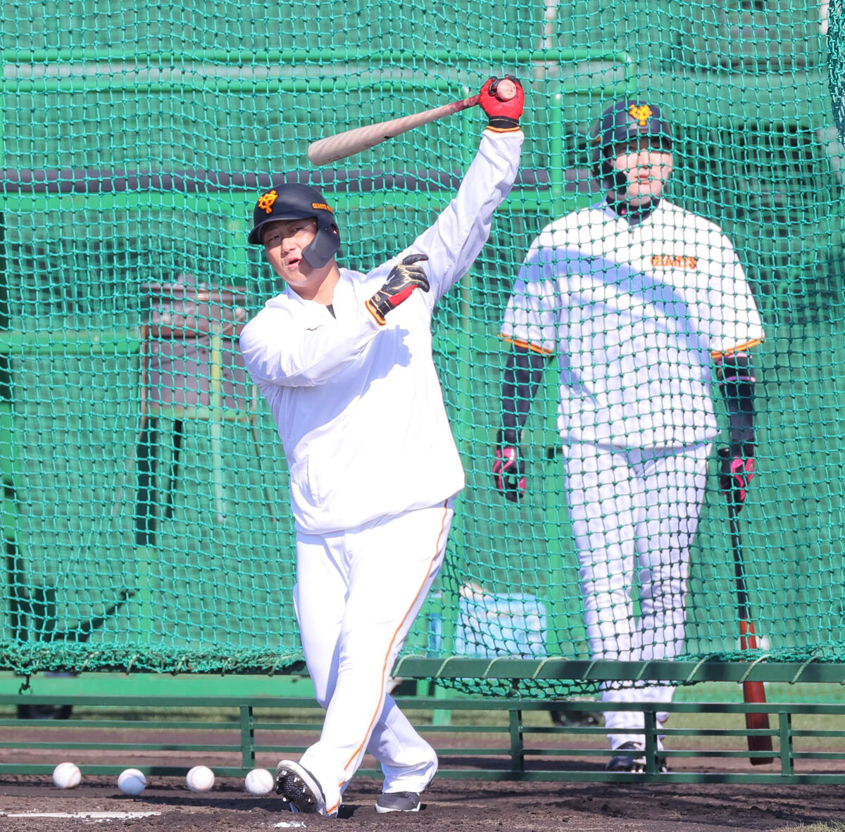 巨人リチャード、川相コーチとバント練習WWW