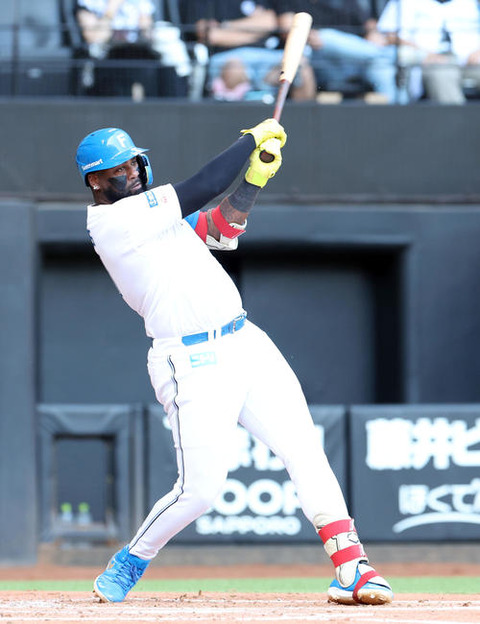 ハムの化身「グレイエス・ムタ」? アイブラックを塗りたくった助っ人が右前打
